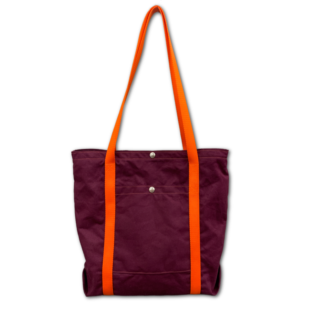 Made from durable and water-resistant waxed canvas and paired with bright straps, the Margo Tote is a practical and stylish do-everything bag. Big and roomy for carrying what you need for your day, with a pocket on the front for your phone and other small essentials, as well as a divided pocket on the interior help keep your goods organized. Fully lined with light grey water-resistant nylon.