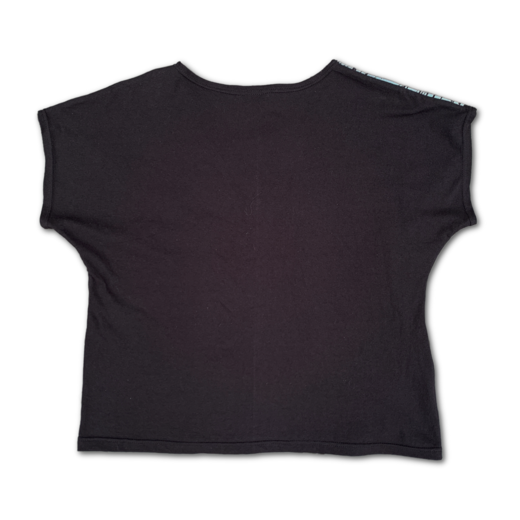 Soft knit tee in a relaxed fit, easy to throw on and elevates your look while still being comfy! Size down for a more fitted look. Hand printed in-house with my 'Brushstroke' design in overlapping white ink on black cotton jersey fabric. I'm wearing size large in these pics and my measurements are 40" bust, 35" waist, 41" hips, 5' 6" tall.