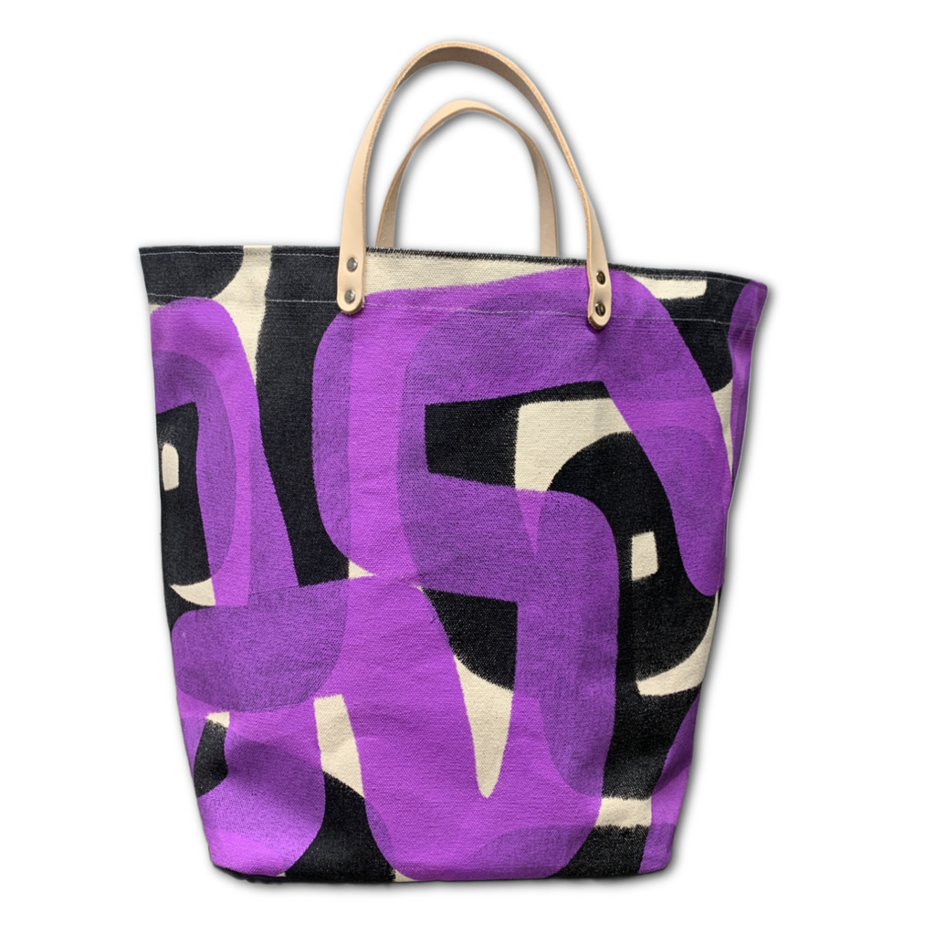 - Printed by hand with water-based inks on 18oz heavy cotton canvas with a dark charcoal base